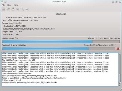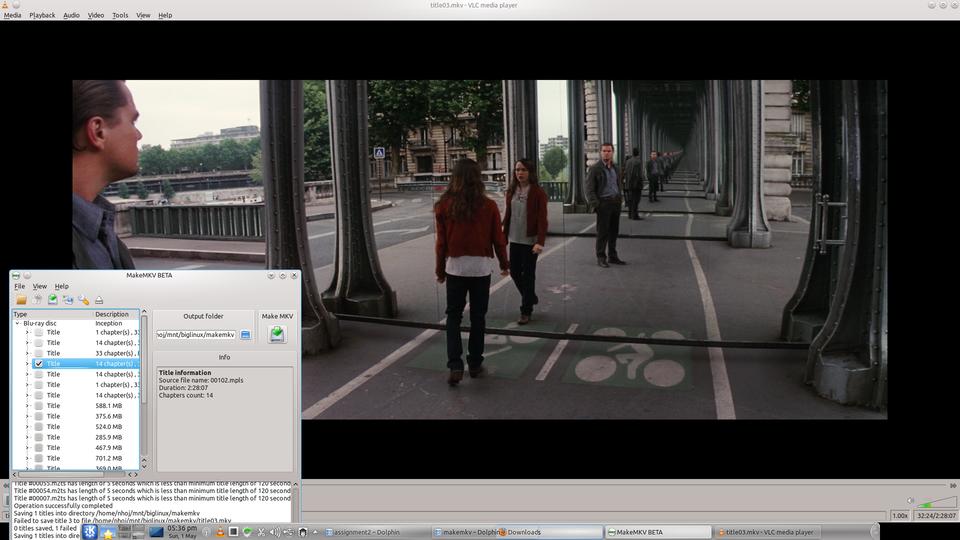 Just after writing that section, I found a guide on how to stream from MakeMKV to VideoLAN. This saves on ripping time, but it also has jittery performance, and when I tried it with MPlayer, it was very glitchy. For those wanting to try their luck with this alternative, the guide is available at themediaviking.com/software/bluray-linux.