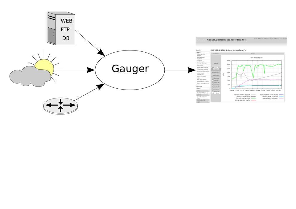 Each Gauger client installation requires a local Python (> or = than 2.6) interpreter. For the Gauger server, a Web server installation with PHP and gnuplot is required.