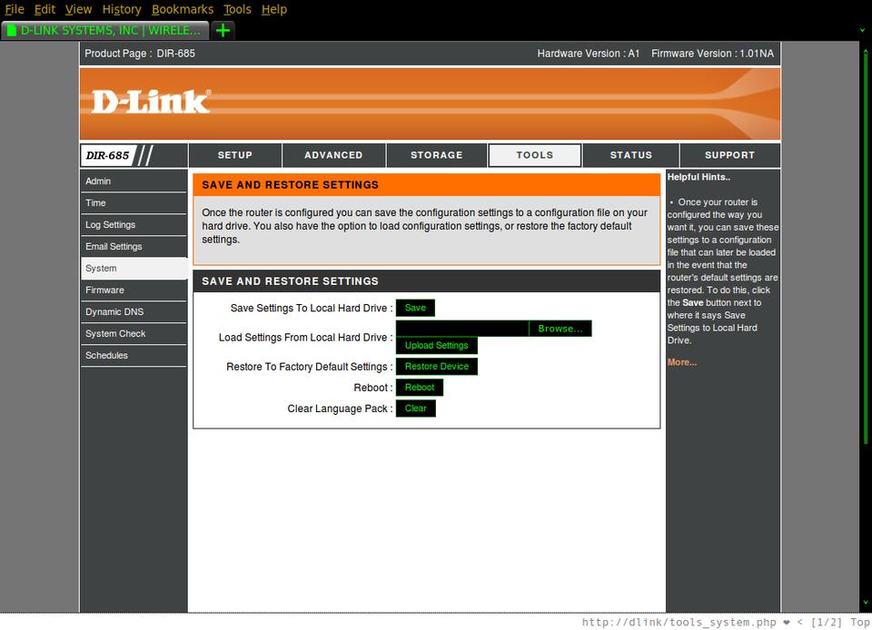 Wireless routers have a long history of being hackable. If you take any group of Linux geeks, you are bound to find a number of them who have, or have had, a member of the classic Linksys WRT series. If you look on-line, there are all sorts of custom firmware you can install to extend its functionality. Although it's true that on some versions of the router you have to jump through some crazy hoops to install custom firmware, it's still not the same kind of challenge as discovering and exploiting a vulnerability on a server. Although I have a stack of WRT54G routers, this article isn't about them; instead, it's about the D-Link DIR-685.