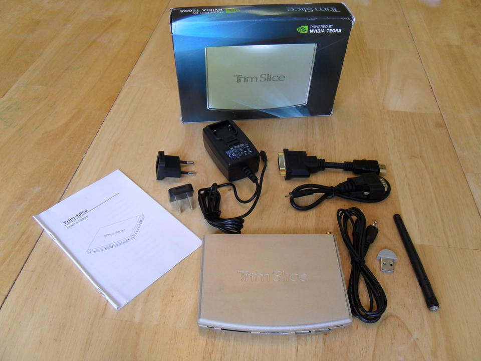 On the outside, it has an RS232 serial port, SD and microSD card slots (both SDHC-compatible), four USB ports, HDMI and DVI-D video out ports, 802.11n and a Gigabit Ethernet port. Inside, it comes with Ubuntu pre-installed on the SSD (10.10 “Maverick” was installed on the one I received, but there is now an update to 11.04 “Natty”, which I applied and which I expect is now shipping on newly ordered units).