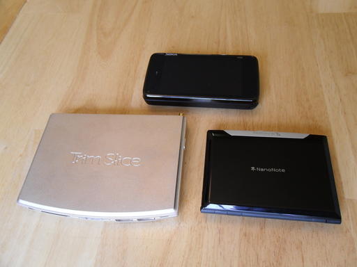 Figure 2. Size Comparison: the Trim-Slice Next to a Nokia N900 and the Ben NanoNote