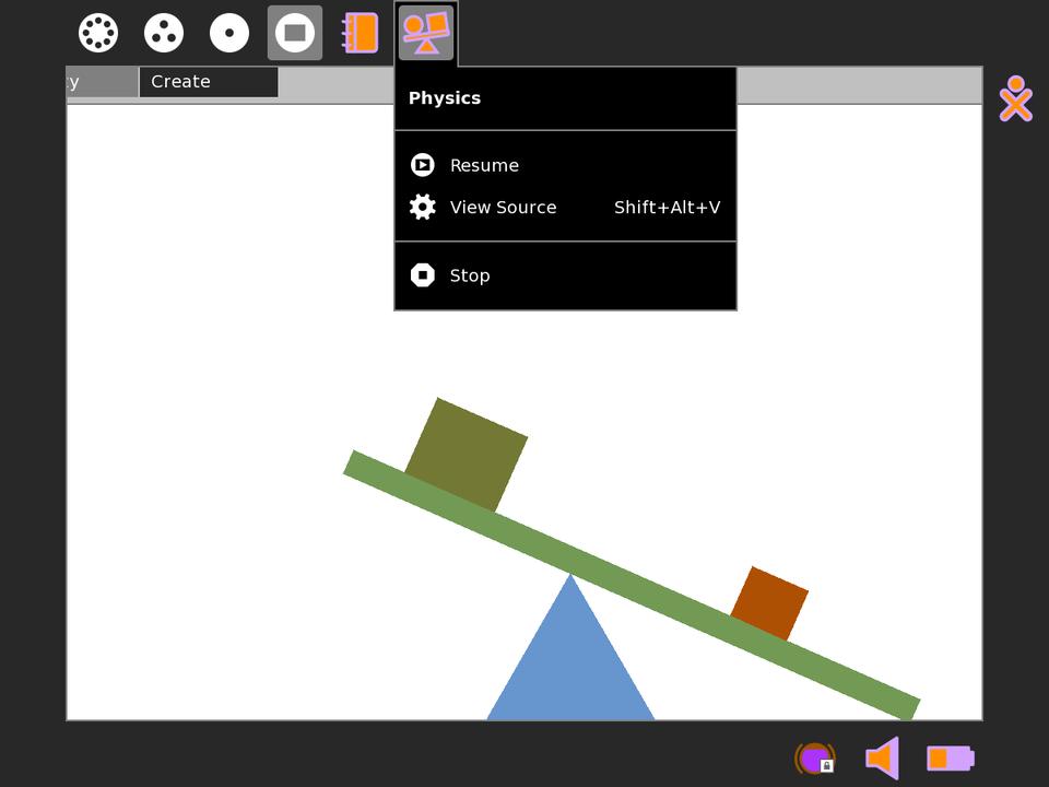 The Sugar user interface is very simple. It has a “low floor”, so that even children as young as ages two and three can start to use it. At the same time, it puts no limit on what they can achieve. Children can use Sugar to reach very complex ideas. They are not bound by its simplicity; rather, they use its simplicity as a catalyst for growth. Sugar presents no “ceiling” to the learner. In fact, each application ships with its source code (usually Python) and can be viewed and modified in much the same way as with HTML.