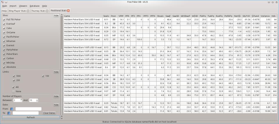 This last step really shows you how to use all of the other viewers as well, so feel free to explore the other features to your heart's content—Ring Player Stats, Tourney Stats, Positional Stats, it's all there. And don't feel restricted to your own account either. You also can see the stats of other players, which, when you think of it, is really the whole point of this program!