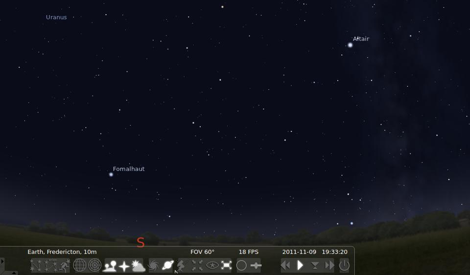 The first is Stellarium, my personal favorite for day-to-day stargazing. When you install it, you get a thorough star catalog. By default, Stellarium starts up in full-screen mode. The layout makes for a very attractive display of the sky above you, and almost all the details of the display are customizable.