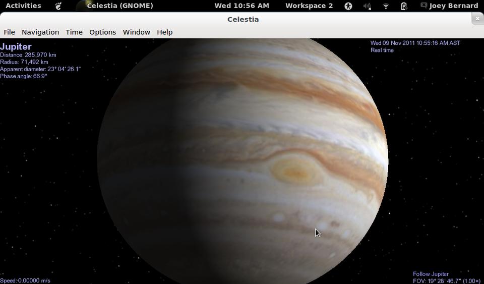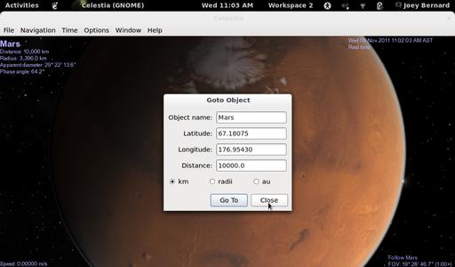 The other popular astronomy program is Celestia. Celestia is a three-dimensional simulation of the universe. Where most astronomy software shows you what the sky looks like from the surface of the Earth, Celestia can show you what the sky looks like from anywhere in the solar system.