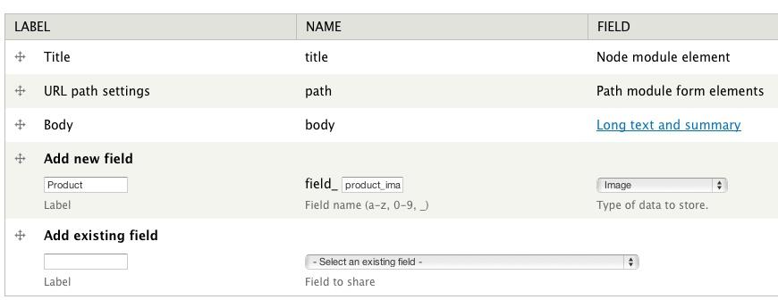 After you've opened the admin page for creating a content type (Figure 1), in the Name field, enter “Product”. Leave the rest, and click the button that reads “Save and Add Fields”. On the next page, you'll see a table with a few fields (for example, Title, Body). Let's add a couple more for the site's specific needs. In the Add new field section, type in the first box, “Product Image”. For the Name column, enter “product_image” (this creates a field in MySQL, field_product_image). For the Field Type, select “Image” from the drop-down list. Now click Save. On the next two screens, accept the defaults and click the save buttons for each page.