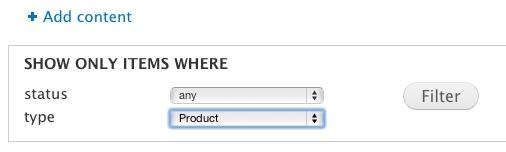 You may want to experiment and add a few more fields (such as Price, Ink Color and so on). Otherwise, you now can create products on the site. To make things easier to understand, add a few pens and pencils. Search the Web for photos of pens and pencils, and grab them so you'll have images to go with the products you add. To enter products, go to Administration→Content→Add content and click on the content type, “Product” (/node/add/product). If you make a mistake and want to change a product after it's saved, or if you just want to see a list of products, go to Administration→Content (/admin/content). There, select the type, “Product”, and click Filter to show only products (Figure 3).