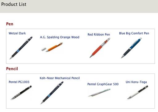 Notice in Figure 6 that the pens are grouped together, separated from the mechanical pencils. Because I entered content entries for four pens and four pencils for testing and set the number of columns to four in the view, the results are showing only four of each in one row. Had I entered eight pens, two rows of pens would show. The name of each pen and pencil functions as a link to the node, which presents a larger photo of the product, as well as all of the other information on the pen and any other fields I may have added. You can adjust the view to provide more information at this level. You also can have the links set to go to a different page generated by the view. And, you can change the formatting (that is, CSS using the CSS Injector module) to alter the colors and layout, as well as choose a different theme for Drupal. However, what I've done here demonstrates the basics of creating a content type and a view to filter and organize the data for a particular content, as well as how to display that data dynamically.