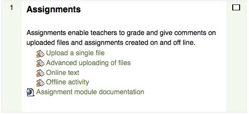 Assignments: students can upload finished assignments directly to the teacher, upload a file with comments or additional information, or even complete an assignment directly into the on-line text editor (Figure 3). The instructor decides how the assignment should be completed, and students complete it using the appropriate method. Moodle even allows assignments to be completely off-line, with no interaction from the student. They simply are listed so the student knows the assignment must be completed. Assignments are graded by the instructor, and students can see the results on-line.