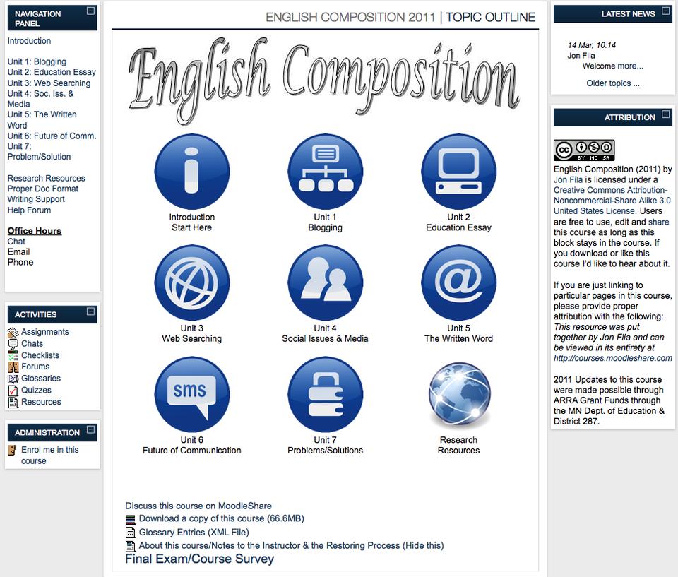 Moodle Share (www.moodleshare.org): this third-party Web site offers an extensive selection of courses available for download. Many of the courses were designed by Minnesota District 287, using funding from ARRA Grant Funds. Hats off to District 287 for sharing its resources! (Figure 8 shows a freely available lesson from Moodle Share.)