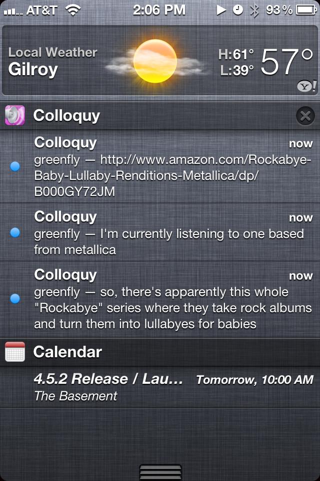 This solution, although totally usable, isn't quite as elegant as I'd like. My “main” tablet and phone are both iOS devices (iPad and iPhone, but let's not discuss my choice of mobile devices here), and Apple has a very clean, integrated push notification system. I started poking around to see if there was any way to send push messages to my iDevices rather than rely on SMS—that way my iPad would receive IRC “pings” as well.