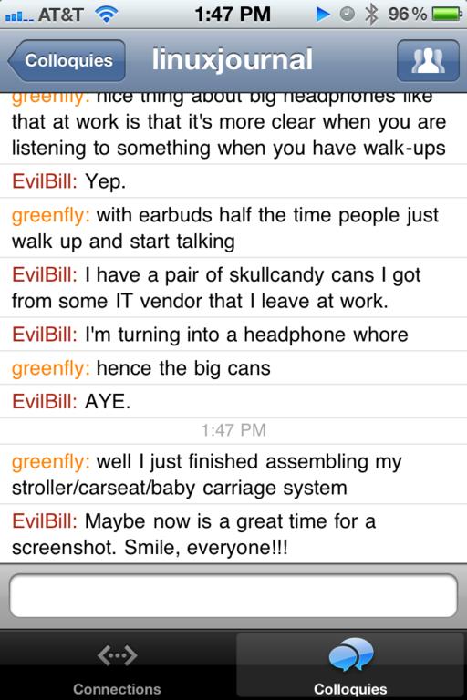 Figure 5. Firing Up Colloquy to Join the Conversation