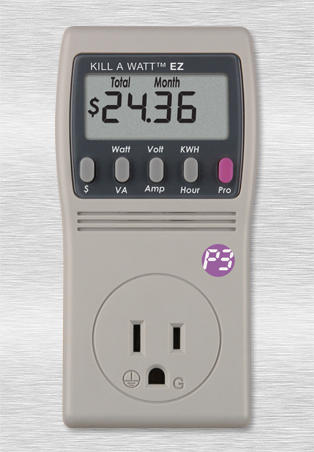 P3's new version does automatic calculation, and it also has a battery-powered memory to retain measurements even when unplugged. We still recommend using a short extension cord, because it's often difficult to read the Kill-A-Watt when it's plugged in to the wall. We recommend checking devices you suspect of high usage, and also those you don't. A laser printer, for example, uses very little power when idle, but things like an electronic pet-containment fence or even a doorbell can use much more than you'd suspect. Visit p3international.com/products/p4460.html for more information.