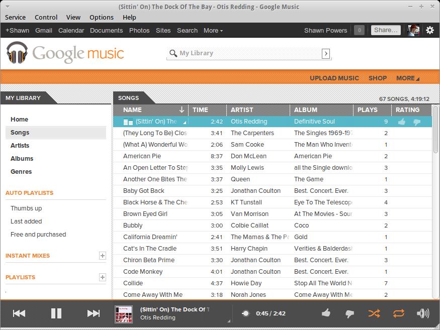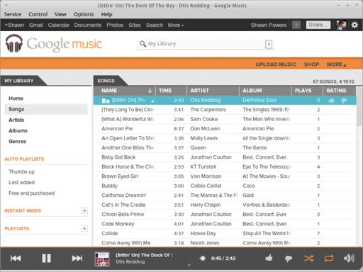What makes Nuvola better than a standard Web browser is that it integrates with the Linux desktop. Nuvola gets its own tray icon and supports multimedia keys on keyboards that have them. I traditionally store my music files in Dropbox, but since Google Music has excellent support on Android phones, I find myself using the cloud-based service almost exclusively. Nuvola makes that experience much nicer. Check it out at https://launchpad.net/nuvola-player.