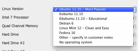 Seriously though, ZaReason is a company that sells Linux computers. When configuring your system, you get to choose from the most common distributions. By name, they offer all the 'buntus, Debian, Fedora, Linux Mint, no operating system and my favorite, “tell us what kind of Linux you want.”