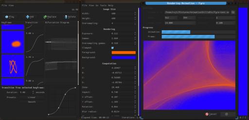 Fyre is a program that generates and animates Peter de Jong maps. You don't need a screen recorder to make animations with this; you can enter key frames and render an AVI file directly from the program. As you can see from the screenshot shown in Figure 7, Peter de Jong maps make for some neat, abstract images.