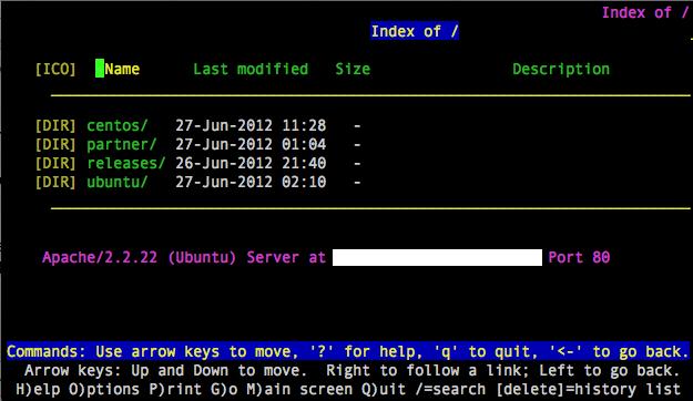 Assuming everything was done correctly, you should have a working mirror! Test it out by going to http://your.server.ip/ubuntu and http://your.server.ip/centos, and see if you get a listing that looks like a mirror. If you get a message about “forbidden” from your Web server, you'll need to add indexing options in order to see directory listings. Even without the indexing options added, however, the mirror itself should work.
