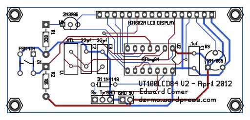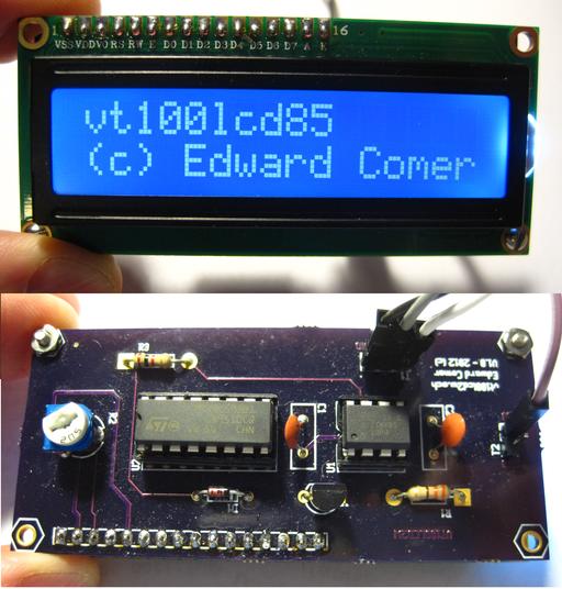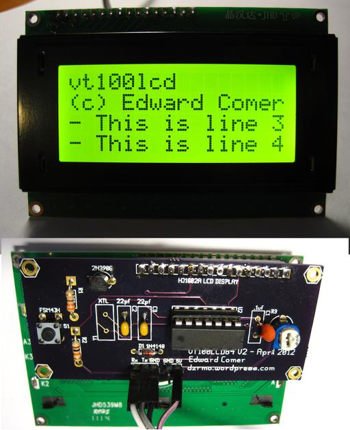 Being somewhat of an old-timer, I spent a lot of time using and coding for the DEC VT100 display terminals upon which the ECMA-48/ANSI X3.64 standards are based. I felt that if I coded the daughter board to turn an LCD display into a tiny, affordable DEC-VT100, I would have something reasonably unique and useful. Serial-driven LCD displays do exist, but they typically have proprietary protocols, and some are rather expensive. As far as I have been able to determine, there exists no open-source (software and hardware) serial LCD display with VT100 protocol. I found my project!