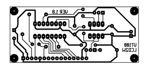 Years ago, I occasionally used to make Printed Circuit Boards using a photographic method that is less common in the DIY community today. The acid-resistant pattern was laid out by hand onto translucent or clear drafting paper using fine black tape for circuit paths and dry transfer patterns for components. This pattern is typically a positive, similar to Figure 7, so a negative must be made photographically for the process to work. The end result is that the negative's acetate sheet is clear where copper should remain after etching. This photographic work formerly was done in a darkroom, but today, creating the negative can be done using a computer printing to a transparency sheet. I don't discuss the process here, but an example is shown in Figure 8.