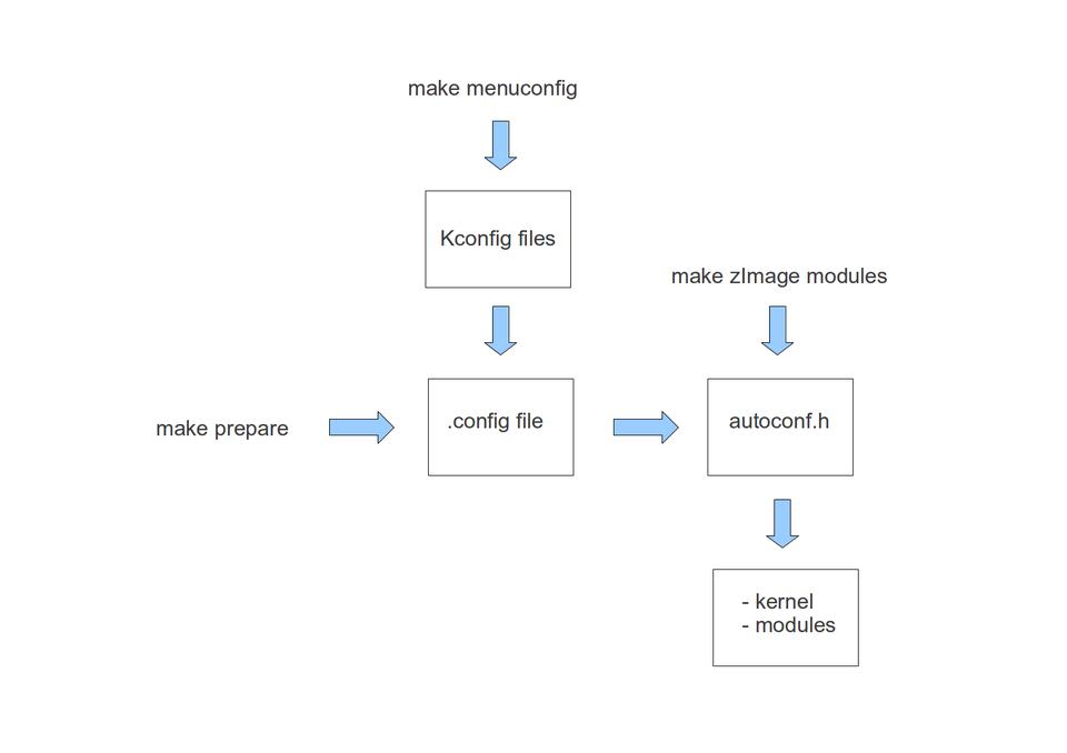 Once you have your .config file, you are ready to compile your kernel and its modules. When you execute a compile target to compile the kernel or the modules, it first executes a binary that reads all the Kconfig files and .config: