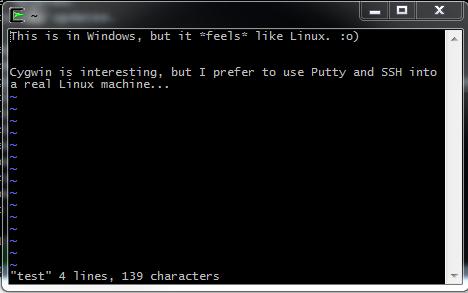 Cygwin not only provides Windows-native versions of many Linux applications, it also includes a full X server. This X server runs alongside Windows, and it can run X applications installed locally or tunneled over SSH from a remote server. If it sounds like Cygwin is too good to be true, you're sorta right. Although it includes some amazing features and has a very familiar interface, to me it feels clunky to use. Before I get hate mail, let me be clear. Cygwin is amazing; it's just that I don't like the feel of the interface. It reminds me of using Linux back in the days when TWM was a viable window manager. I recommend giving Cygwin a try to see if it fills your needs. It is completely free, so there's no reason not to install it.