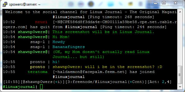 Figure 4. The #linuxjournal channel in a Putty window, silly as always.