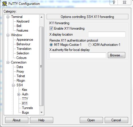 Figure 5. Putty will forward X11 traffic to your local Windows X server, if you have one.