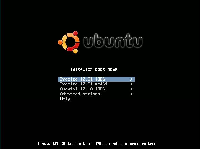 ↪initrd=precise/ubuntu-installer/i386/initrd.gz -- quiet