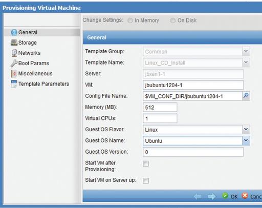 Out of the box, ConVirt has two pre-configured templates for use with provisioning. These templates contain common configuration settings for a specific OS installed from a CD. Provisioning from the built-in templates is easy. Simply right-click a template, and select Provision to create a guest on your selected managed server.