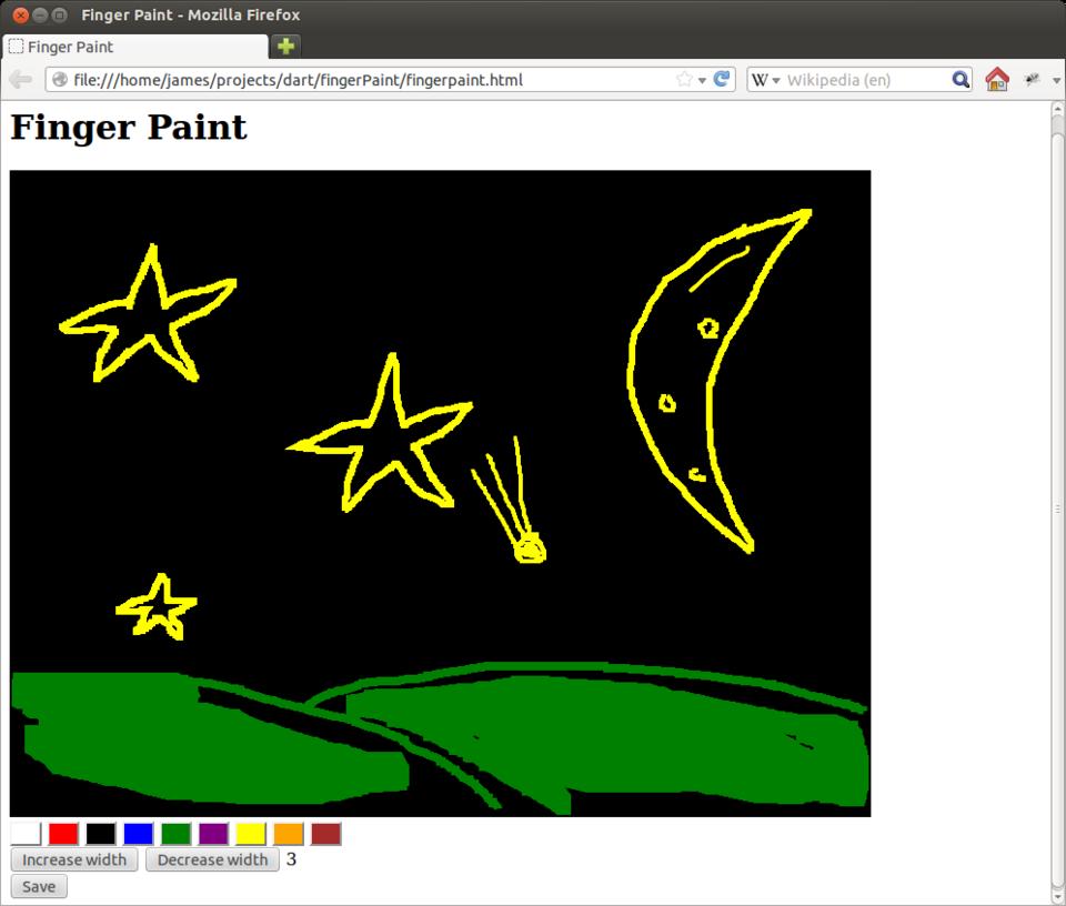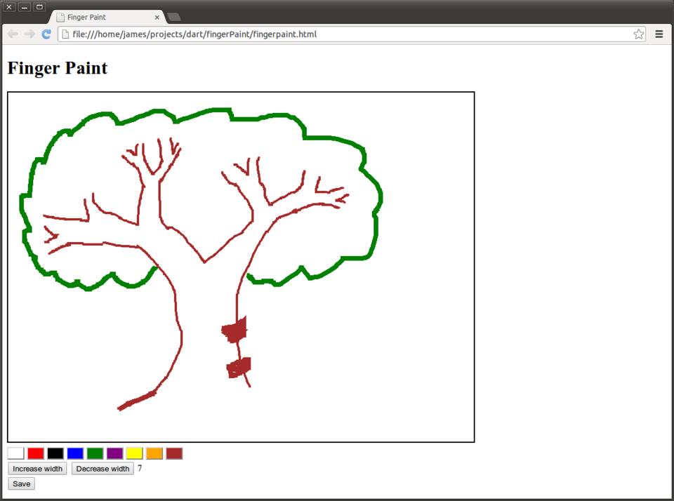 Figure 1. The finger-paint application running on Dartium, a special fork of Chromium.