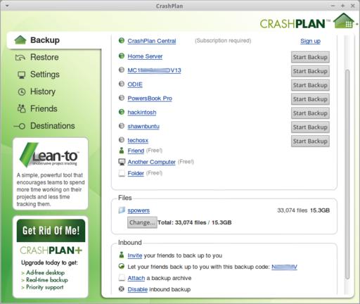 Crashplan is an incredibly powerful backup utility that allows local or offsite backup, and the company offers cloud-based storage for reasonable rates. Normally, I wouldn't be so excited by a paid service and a non-open-source software package, even if it does offer a Linux-native client. The folks at Code 42, however, have given away the ability to swap storage with friends as an alternative to their paid-cloud-based service. If you have a computer at work, and a computer at home, you can back them up over the Internet to each other completely free!