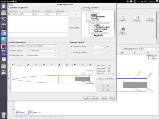 OpenRocket is not only a design program. You also can take your model rocket and run an analysis on it to see how it will behave in flight. The analysis section looks at individual components and shows how they affect the stability, drag and roll characteristics of your rocket. You can set parameters like wind direction, angle of attack and speed, and calculate how it will behave in flight. This is great functionality, but OpenRocket goes even further. It can take your original design and try to optimize it for the best flight characteristics. You can optimize based on altitude, velocity or some other combination of characteristics.