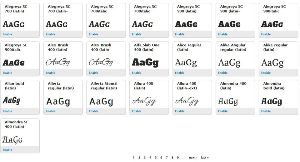 Figure 3. Google Fonts Drupal Module Administration Screen for Fonts