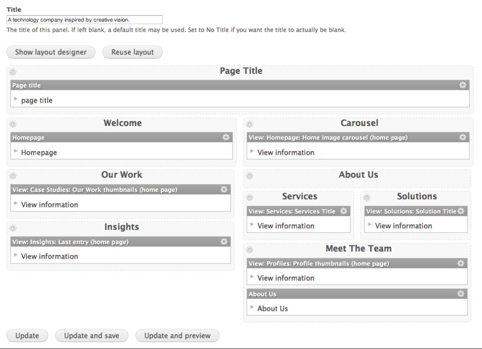 Figure 4. Panels Drupal Module Administration Screen for Content