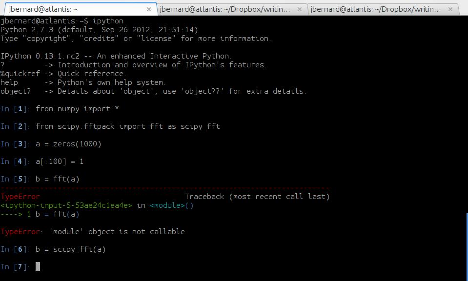 The first step is to install IPython and SciPy. Luckily, most distributions should have packages available for both of these. For example, on Ubuntu, simply execute: