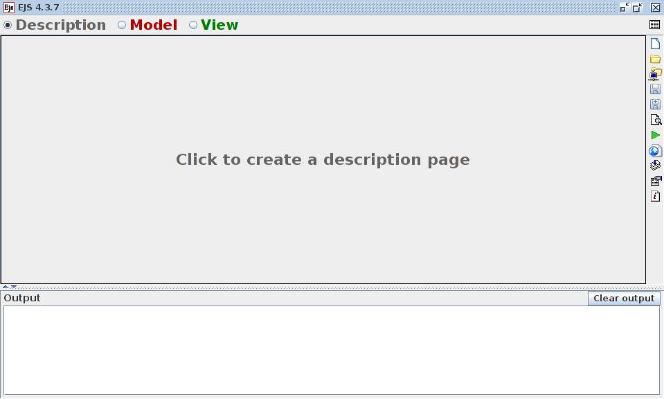 This pops up a console window where you can set some initialization parameters and start one or more EJS instances. This opens a modeling and authoring tool where you can define your physical system and the details of what you are trying to model. You can run these models from within the authoring tool, so you can try things out and see whether you are getting the results you expect. Once you are happy with the simulation, the authoring tool has options to allow you to package the entire simulation as a single bundle that you can share with others. This is great when you are developing code for a class, because you can define simulations for the exact physical systems you want to teach and then package it for your students.