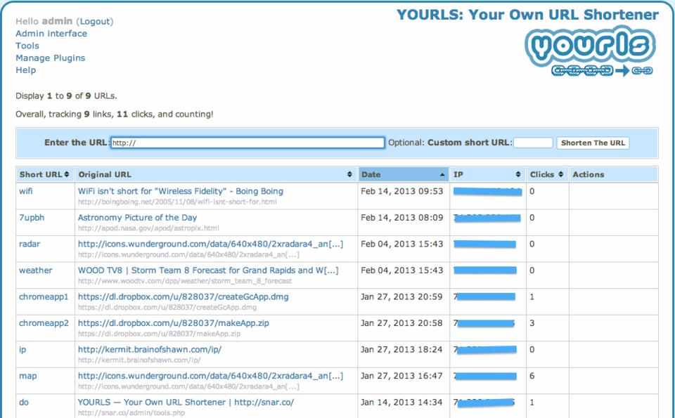 YOURLS does some things the scripts and methods above just can't do. Some of its more awesome features include:
