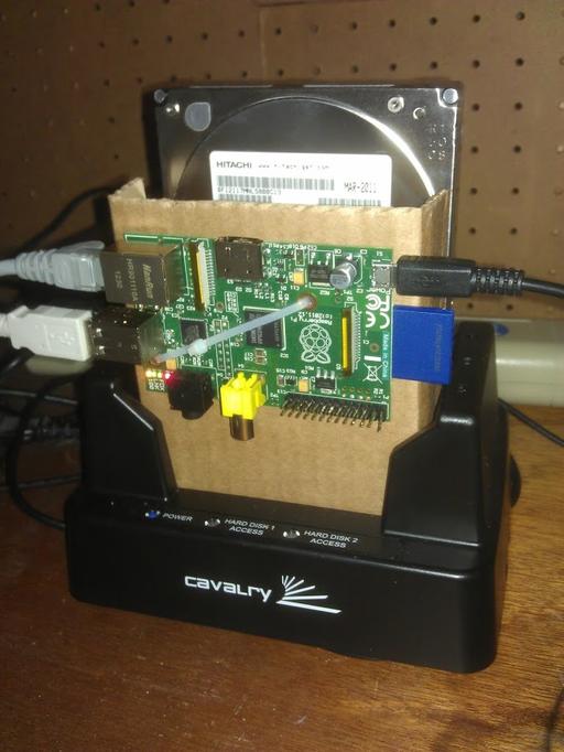 For a home server, you'll need a medium-size SD Flash card for local storage. It's possible to use a USB thumbdrive for booting, but that would use up one of the two precious USB slots. The Flash storage card doesn't need to be large, but the faster the better. I chose a name-brand SD card with an 8GB capacity and class 10 speed rating. For backups and multimedia files, a large hard drive with a USB dock is a must. I chose a 1.5TB hard drive and a Calvary EN-CAHDD-D 2-bay USB 2.0 hard drive dock. This dock has a feature to run two drives in RAID-0 mode, which could be useful someday. Finally, the RPi doesn't come with a power supply, but most smartphone chargers supply the required 5v-over-micro USB. To see if the RPi was fussy about the power source, I swapped through three different micro-USB cell-phone chargers for power supplies. I tried each one for about a week, with no issues on any of the units.