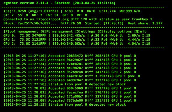 At the current market rates (April 24, 2013), a user with a single AMD Radeon 7950HD video card can make $6 a day mining cryptocurrency. Granted, it'll cost around $1 in electricity, but that's still a $5-per-day profit. Of course, tomorrow the market could tank, and it'll be worthless, but at this precise moment, it's profitable. I've written about cryptocurrency before in Linux Journal, but as you can imagine, I've gotten lots of questions about mining since the price skyrocketed. In this article, I want to talk specifically about mining. If you're unsure about cryptocurrency in general, look back at my past article: www.linuxjournal.com/content/cryptocurrency-your-total-cost-01001010010. If you just want to get down and nerdy, keep reading.