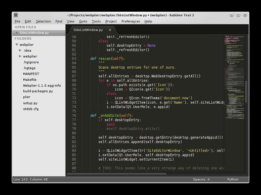 I like to think that Sublime walks the fine line between an IDE and a text editor. Its speed and initial simplicity make it suitable for editing /etc files as easily as source code. Sublime's true power, however, is found in add-on packages users can write and install to do everything from synchronizing files over SSH to refactoring code. Basic syntax highlighting is included for major languages, but to make use of Python as a programming tool, I find it's best to install some handy packages.