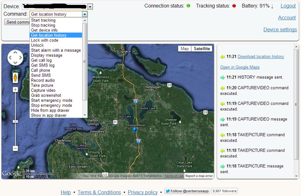 I was worried Cerberus might cause unusually high battery usage due to its regular GPS pings, but I haven't noticed any difference at all. Plus, with all its features (Figure 2), I'd be willing to sacrifice a little battery life. Thankfully, I get the best of both worlds!
