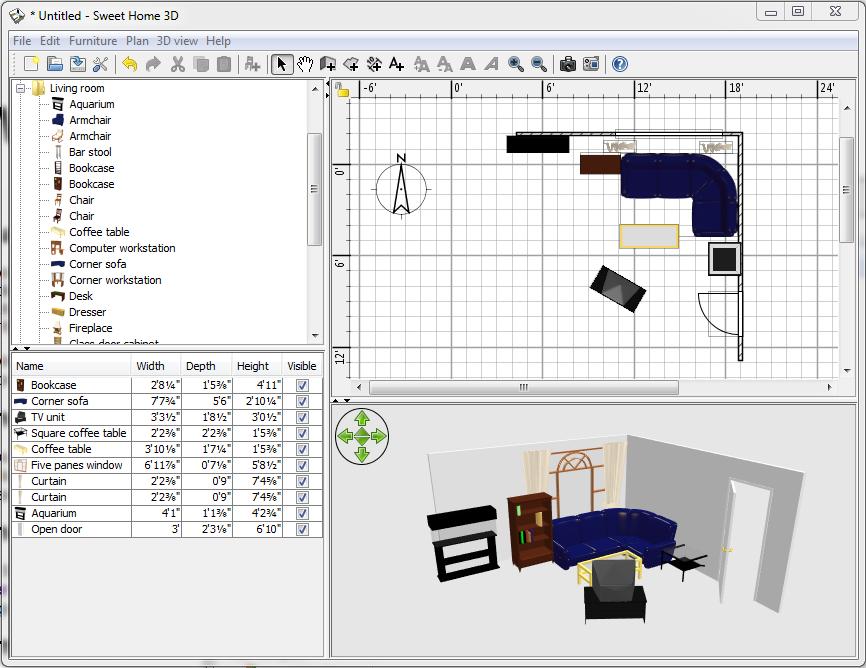 Although several 3-D house-modeling packages exist, and a couple are even on-line, nothing seems to work quite as simply as Sweet Home 3D. It's both a 3-D and 2-D layout tool, and it comes with a wide variety of pre-made furniture and window/door graphics to get you started. I was able to design a rudimentary living room in about two minutes (Figure 1), and that included installation time! Sweet Home 3D is an open-source Java application that comes with a nice Windows executable installer.