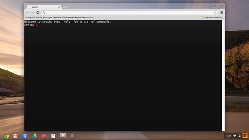 ChromeOS provides a specialized debug terminal via the Chrome browser. Press Ctl-Alt-T, and a terminal will open with “Welcome to crosh, type 'help' for a list of commands.” Type help to list seven commands including the always useful top and ssh commands. Enter help_advanced to produce a longer list of mostly network-related commands, such as network_diag, which performs a suite of network diagnostics.