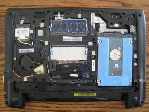 The existing hard drive can be updated with a solid-state drive (SSD), but there are trade-offs. You will give up a lot of storage space unless you purchase a large SSD, which can be expensive. Even the smaller SSDs are not cheap. The extra storage space may be handy if dual-booting the laptop with a Linux distribution. On the other hand, SSDs are lighter and probably more reliable than a traditional drive in a laptop. Don't expect all SSDs to perform spectacularly, because the C7 motherboard supports only SATA II 3GB/sec. An SSD probably would improve boot speed, but boot time is already a quick 17 seconds. Also, an SSD probably wouldn't produce much performance improvement, because the C7 does not use swap space, and the upgrade to 6GB of RAM negated the need for swap space. Thus, I did not pursue the SSD upgrade.