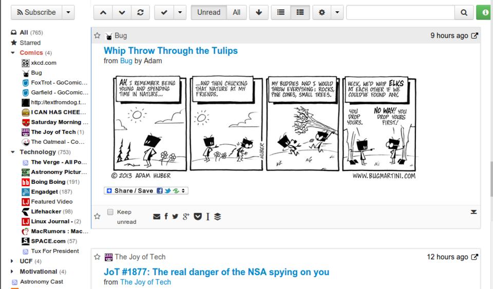 Now that Google Reader is officially gone, most folks have settled on a replacement of some sort. In fact, a few months ago I even went through the process of installing Tiny Tiny RSS as a viable and powerful replacement. At the time, there was only one feature I sorely missed, the “next unread blog” link. Approximately three days before Google Reader shut down for good, I found the holy grail of RSS readers: CommaFeed.
