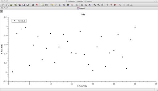 Although graphs can be very useful when trying to get an intuitive grasp of the shape of your data, you do need to back up this intuition with hard numbers. The first thing to do, usually, is simply look at the column statistics. Right-clicking on the column, you would select Column Statistics. This creates a new table where you will get the number of rows in the column, along with other statistics like the standard deviation, variance, sum, minimum and maximum. You can see if there is any correlation between two columns. You need to select two columns from your table, and then click on the menu item Analysis→Correlate. This will pop up a new graph window showing a picture of the correlation. Two new columns will be added to your data table where you can find the lag and correlation values of this particular analysis.
