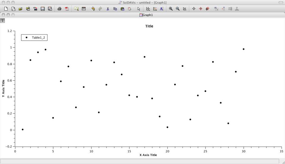 When you are first learning to use SciDAVis, you probably will just want some junk data to play with. You can do this easily by right-clicking the columns and selecting “Fill Selection with”. Then, you can fill the column with either row numbers or random numbers. Once you have some data available, you can create new columns that are functions of the values stored in the other columns. To access this functionality, you need to select the formula tab in the right-hand side pane. In order to explore some of the other features, let's set the first column to be the row numbers and the second column to be a set of random numbers (Figure 2).