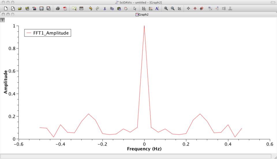 If the data you are looking at has some type of periodicity, you can calculate an FFT of it to see the spread of frequencies within your data. By selecting a column and clicking on the menu item Analysis→FFT, you will get a pop-up window where you can select the details of the FFT you want to calculate. Once these are set, click OK, and a new graph window will be displayed with the FFT plotted (Figure 5).
