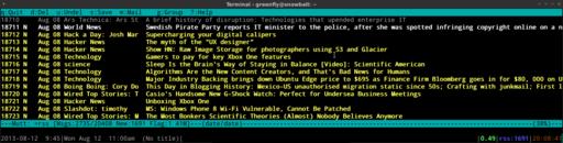 In my last article, I started a series called Command-Line Cloud. The intent of the series is to discuss how to use the cloud services we are faced with these days without resorting to a Web browser. I spend most of my time on the command line, so that's where I'd most like to interface with cloud services. My last article described how to use Google Calendar from the command line, and in this article, I talk about a more general cloud service—RSS feeds. If I had written this column a few months ago, it would have been more focused on replacing Google Reader itself, because that was the primary RSS aggregator I used, but Google preemptively killed off the service and left a lot of users, including myself, scrambling to find a replacement. Although a number of people were able to find some sort of Web-based replacement, I realized the main features I wanted (sorting stories by date and vi key bindings to view the next story) were absent in a lot of the existing Google Reader replacements. What's worse, a lot of people were using this as an opportunity to make a quick buck by selling access to RSS services (and of course, still capturing everyone's valuable Web-viewing habits).