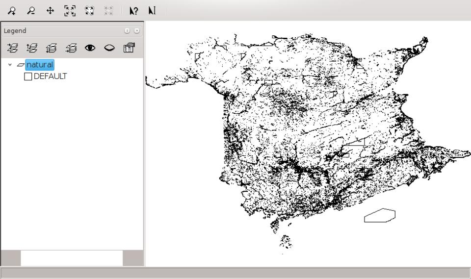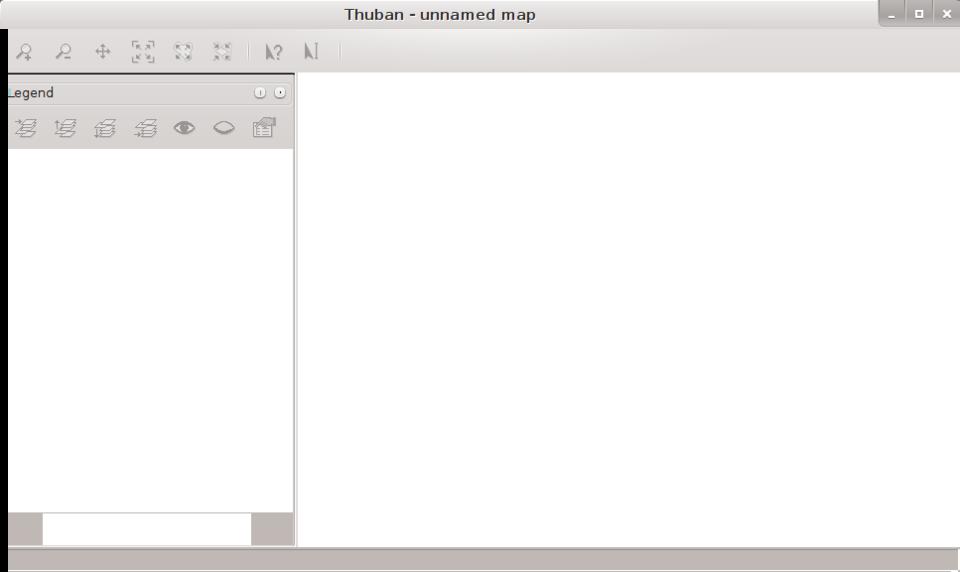 To manipulate the map itself, Thuban uses a sort of mode system. To zoom in, you need to select the zoom button. Then, you either can use click and drag to select a region to zoom in on or simply click a spot on the map to re-center and zoom in. Once you have zoomed in, you can use the pan tool to move the view window around the map to highlight different regions. There are buttons to zoom you to specific scales such that the entire map is visible. This always takes you back to the default map view.